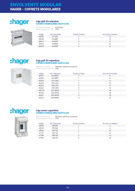 Código Ref. Fabricante Número de filas Anchura en módulos